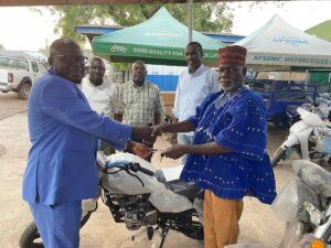 The motorbike was presented to the Municipal Chief Executive, Hon. Peter N. N To-ang, through Mr. Yeng David of the National Democratic Congress.